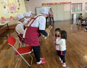 未就園児さんを対象とした『みんなであそぼう』を開催しました。誰でも通園制度の説明会を兼ねて、知恵あそびや給食の試食会を行いました。