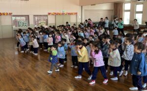 今日は年内最後のレッスン日。クリスマスパーティー&カラーゲームを行いました。行田市が進める「こどもまんなか」政策の一貫で行われている行田っ子も2年目となり、子どもたちはジョー先生とのコミュニケーションも上手にとれるようになりました。